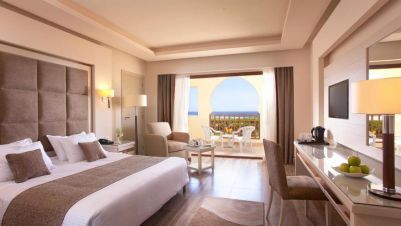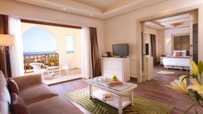 • Deluxe Junior suite -Всички апартаменти са с площ 72 m² с изглед към морето. Максимум 2 възрастни + 2 деца или 3 възрастни + 1 дете. Всеки апартамент включва една основна спалня + една всекидневна, 2 бани и джакузи.