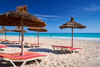 Собствен, пясъчен. Чадъри, шезлонги и матраци на плажа и при басейна - безплатно. Плажни кърпи – срещу заплащане.