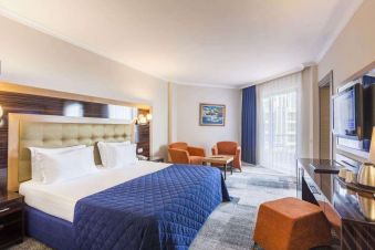 Климатик, телефон, телевизор, вана, сешоар, мини бар ( мин. вода безплатно всеки ден), сейф - безплатен.