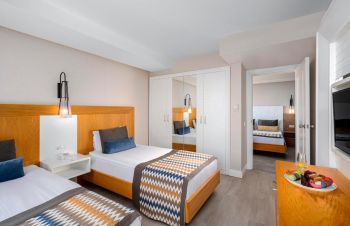 Хотелът разполага с 398 стаи. от които 361 Standard rooms (29 м2),  29 Jacuzzi  rooms (29 м2) , 18 Family rooms  (39 м2 - 2 спални с преходна врата, 1 баня). Всички стаи са оборудвани с: централен климатик, баня с душ, сешоар, телевизор, телефон, мини - бар (ежедневно се зарежда с вода, безалкохолни напитки, бира, шоколад и чипс), сейф (безплатно).
