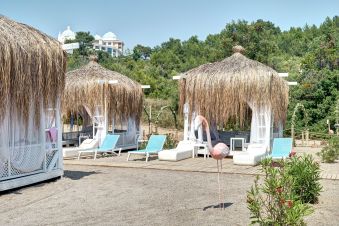 Плаж: Собствен, пясъчно-чакълест. Чадъри и шезлонги на плажа и басейна - безплатно.